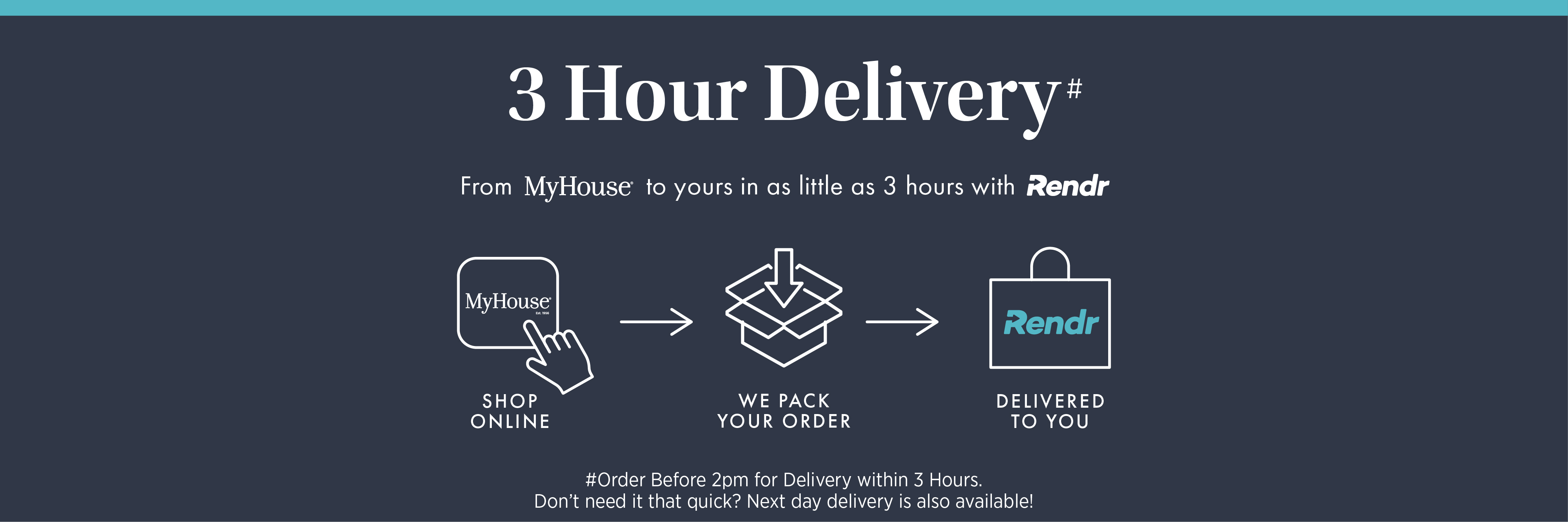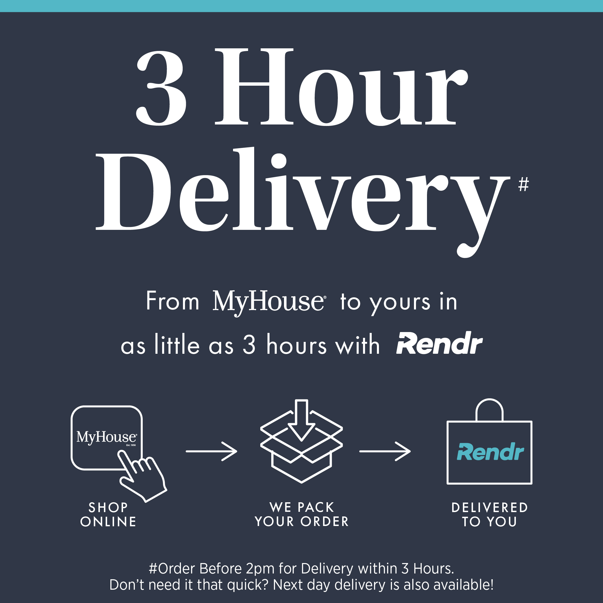 MyHouse® is excited to announce our new fast delivery service that features; 3 Hour and next day delivery options with Rendr. Discover how it works and take advantage of this service today!